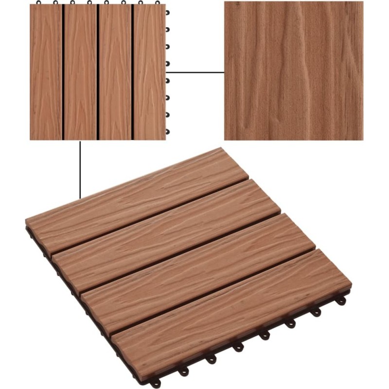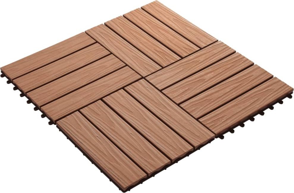 vidaXL Płytki tarasowe tłoczone, WPC, 11 szt, 30x30cm, 1m, jasny brąz