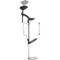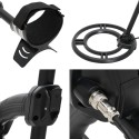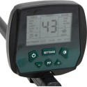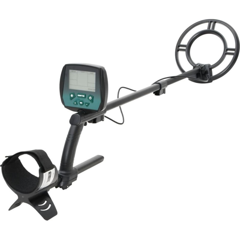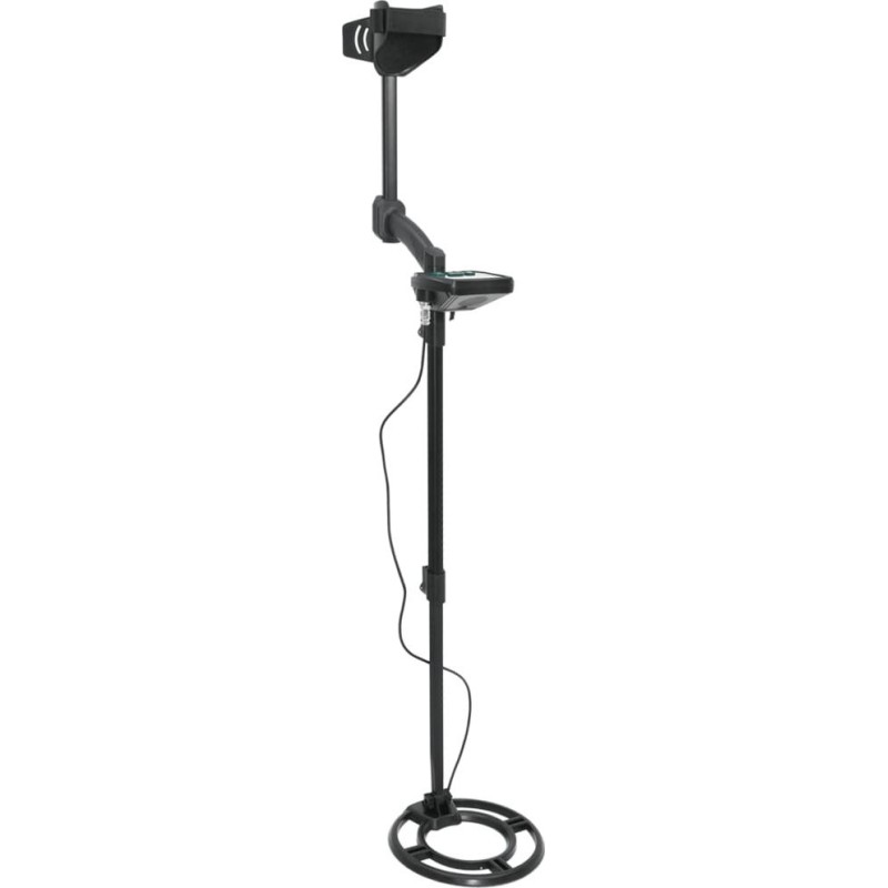 - Dobre wyposażenie: trzy dźwięki wskazują różne rodzaje metalu, a na panelu sterującym znajduje się gniazdo, które umożliwia podłączenie słuchawek. Posiada również trzonek o regulowanej długości i uchwyt pod ramię dla wygodnego użytkowania. Wykrywacz metalu zasilany jest 2 bateriami alkalicznymi 9 V (brak w zestawie).