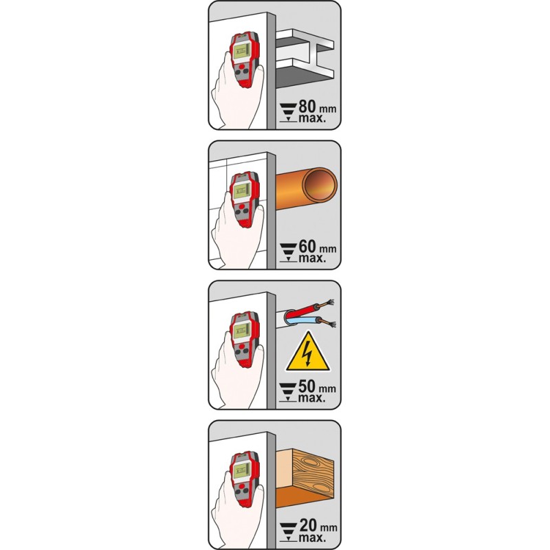 - Profesjonalny wykrywacz przewodów i profili YT-73131 pozwala na wykrywanie w ścianach lub suchej zabudowie: