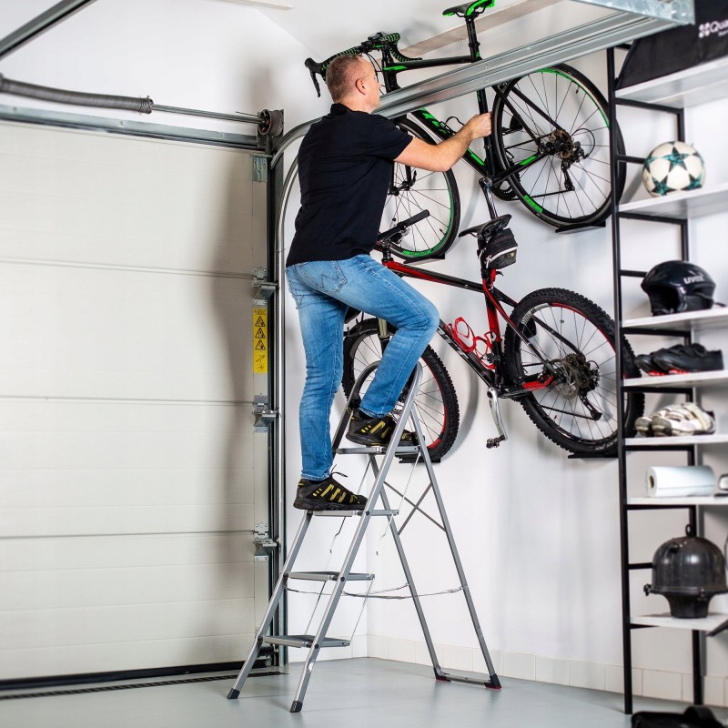 SKŁADANA – drabina domowa posiada specjalny system umożliwiający szybkie składanie i rozkładanie, dzięki czemu jest wygodna w użytkowaniu. Dodatkowo wyposażona jest w blokadę przypadkowego złożenia, która zapewnia bezpieczeństwo.