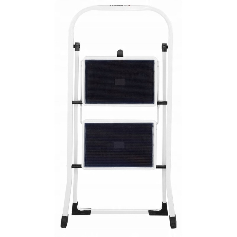 Drabina została wyposażona w dwa ekstra szerokie stopnie, które mają maty antypoślizgowe. Dzięki temu użytkownik może czuć się pewnie i komfortowo podczas pracy na wysokości, co znacząco podnosi poziom bezpieczeństwa.