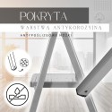 - Drążki stabilizujące z tyłu drabiny: średnica 12 mm, 2 szt. na wys. 11 cm i 107 cm od podłoża