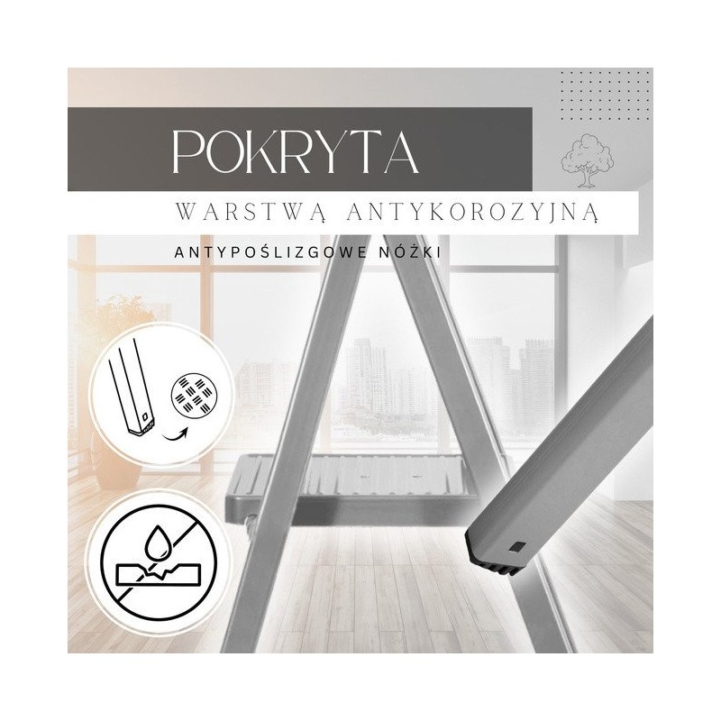 - Antypoślizgowe elementy na końcówkach nóg drabiny (z tworzywa sztucznego).