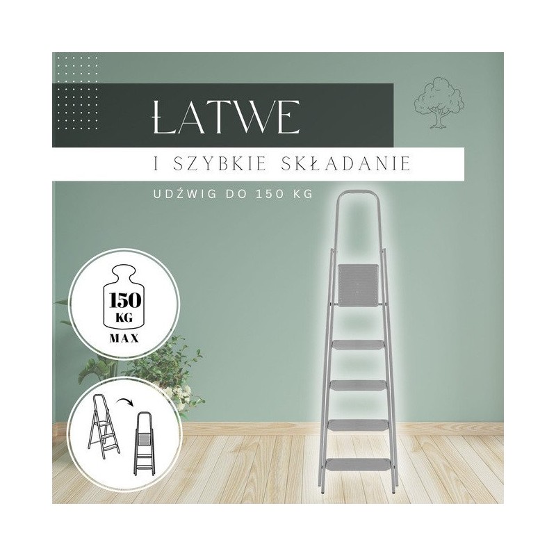 Drabina stalowa składana, 5-stopniowa wys.167 cm antypoślizgowa do 150kg UNIWERSALNY