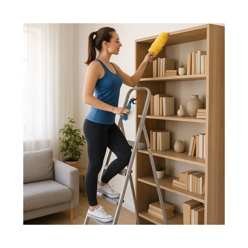 Drabina stalowa składana to doskonałe rozwiązanie dla osób szukających bezpiecznego i stabilnego narzędzia do pracy w domu. Z 5 stopniami i wysokością 167 cm, zapewnia łatwy dostęp do wysokich miejsc, takich jak półki, szafki czy regały. Dzięki antypoślizgowym stopniom oraz nóżkom, użytkowanie drabiny jest bezpieczne nawet podczas intensywniejszych prac. Wykonana z wysokiej jakości stali, jest wytrzymała i odporna na uszkodzenia, a maksymalne obciążenie do 150 kg gwarantuje stabilność i pewność podczas codziennych prac domowych. Składana konstrukcja sprawia, że drabina jest łatwa w przechowywaniu – zajmuje mało miejsca, co czyni ją idealnym rozwiązaniem do mniejszych przestrzeni. Idealna do użytku w domu, ta drabina stalowa sprawdzi się podczas malowania, czyszczenia wyższych powierzchni, a także przy wieszaniu dekoracji czy zasłon. Funkcjonalność, bezpieczeństwo i wygoda to cechy, które sprawiają, że jest to niezastąpiony element wyposażenia każdego domu.