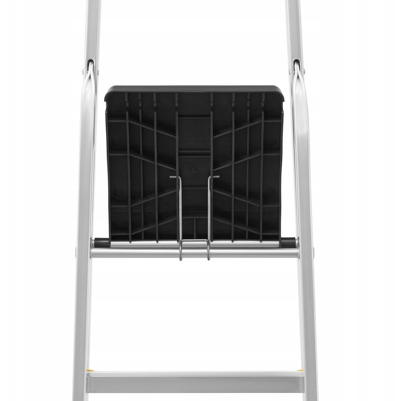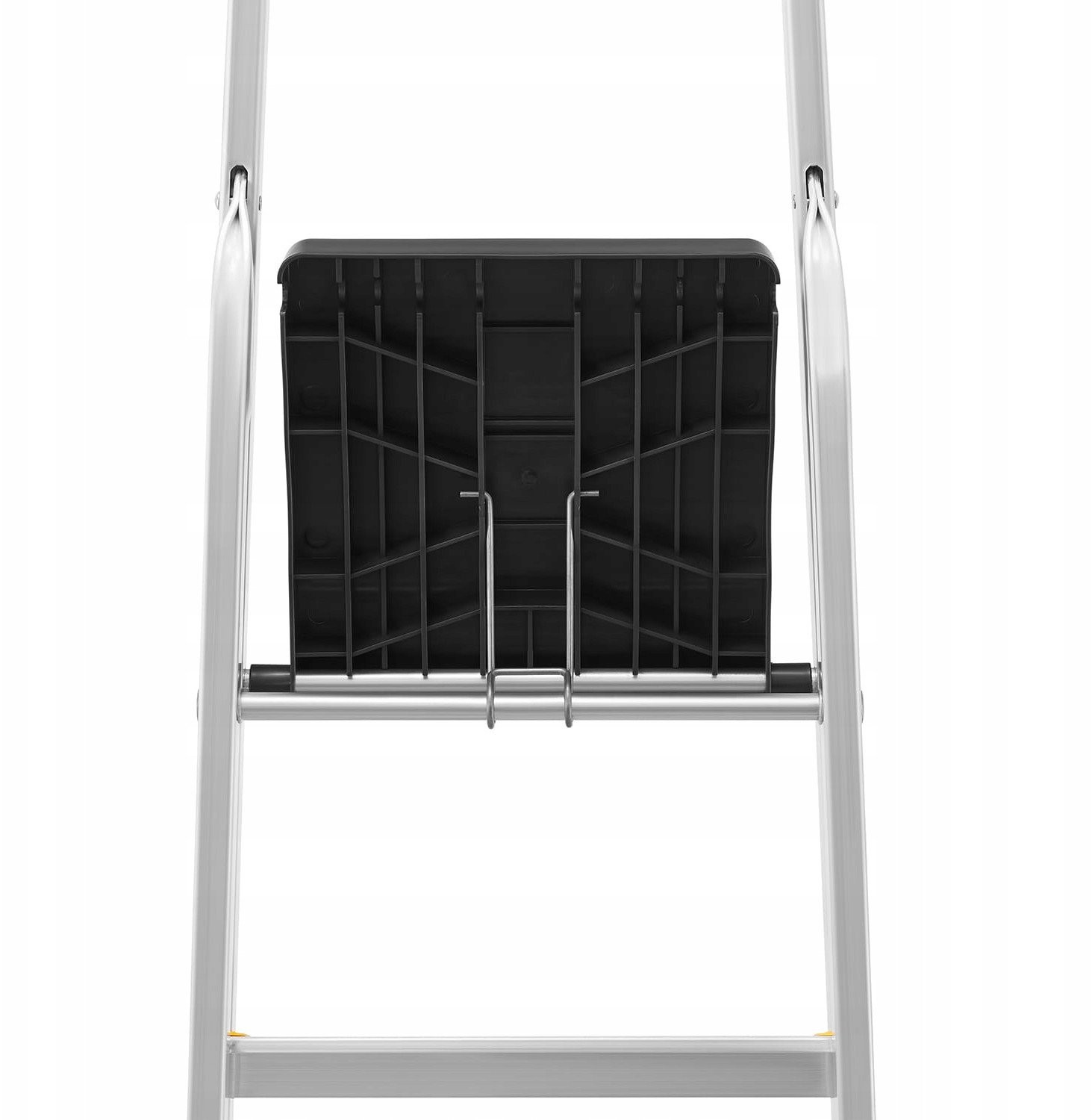 Platforma drabiny, stworzona z nowoczesnego tworzywa sztucznego, jest pięć razy trwalsza niż standardowe stalowe platformy, co zapewnia lepszą odporność na zużycie oraz brak korozji. Drabina spełnia europejskie normy bezpieczeństwa EN 131, co gwarantuje jej wysoką jakość oraz bezpieczeństwo użytkowania.