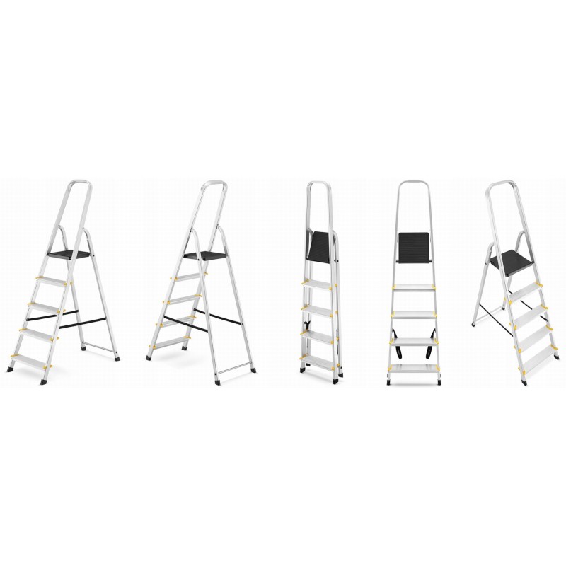 Drabina aluminiowa, 5 stopni, wytrzymałość 150 kg I-1915