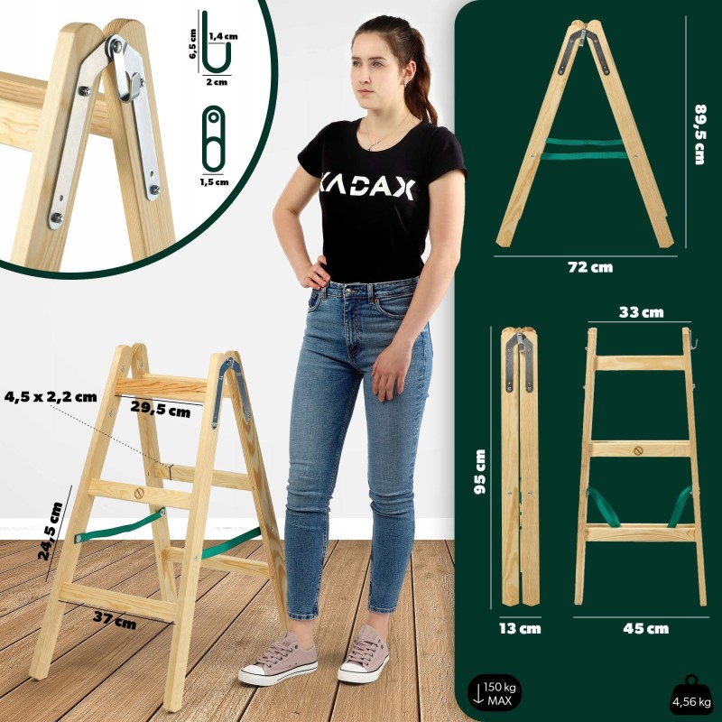 - Wymiary drabiny po rozłożeniu: 72 x 89,5 cm