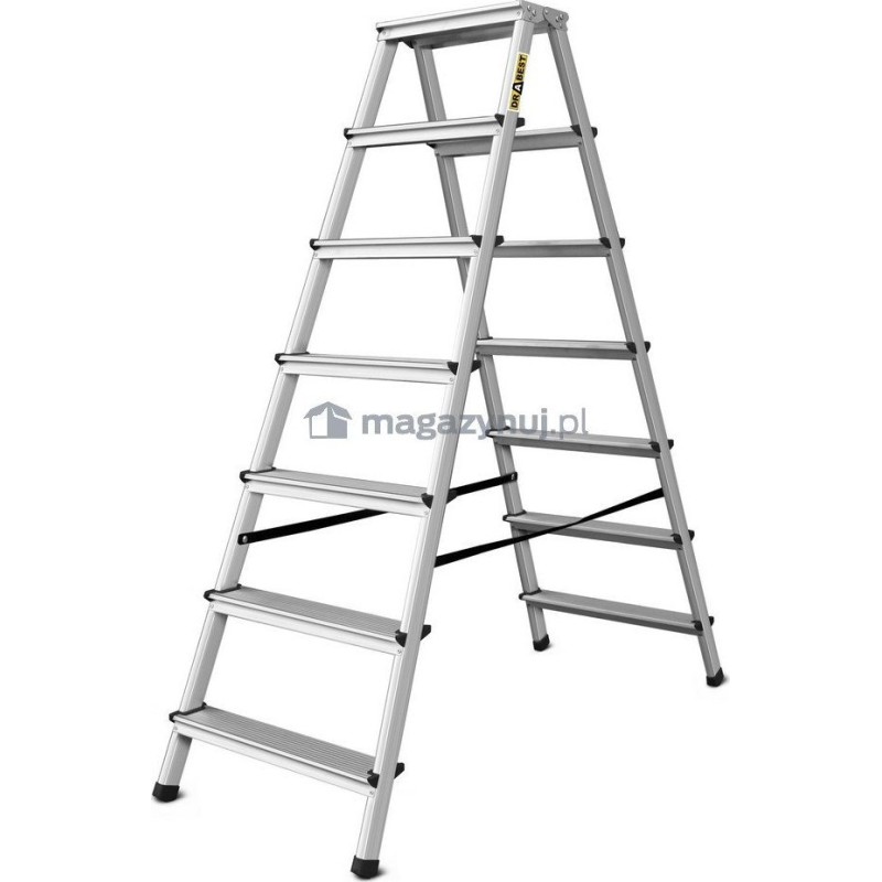 DRABEST Drabina aluminiowa, dwustronna, 7 stopni wytrzymałość: 125-150 kg (wytrzymałość 125 kg)