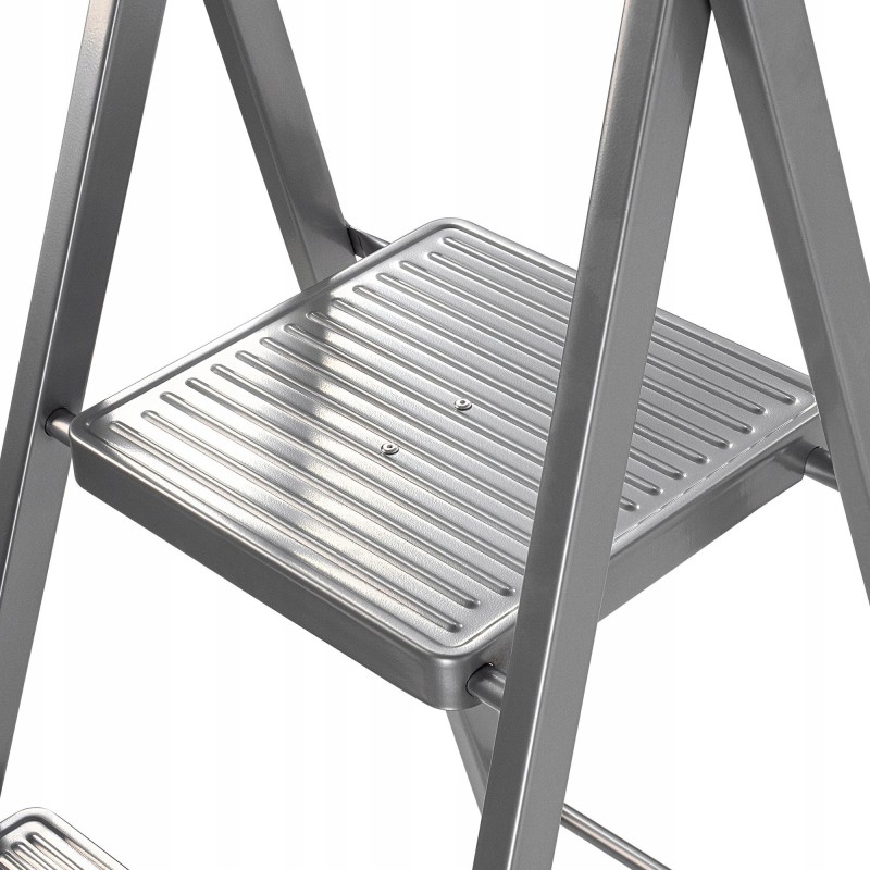 Drabinka wyposażona jest w ekstra szerokie stopnie, które pokryte są matami antypoślizgowymi. Dzięki temu użytkownik może czuć się pewnie i stabilnie, nawet podczas bardziej wymagających zadań. To idealne rozwiązanie dla osób, które często korzystają z drabiny w różnych warunkach.