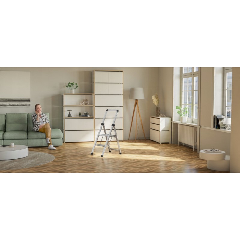 Drabina Hailo DK40 BasicLine jest składana, co znacząco ułatwia jej transport oraz przechowywanie. Po złożeniu zajmuje niewiele miejsca, co czyni ją idealnym rozwiązaniem do małych przestrzeni.