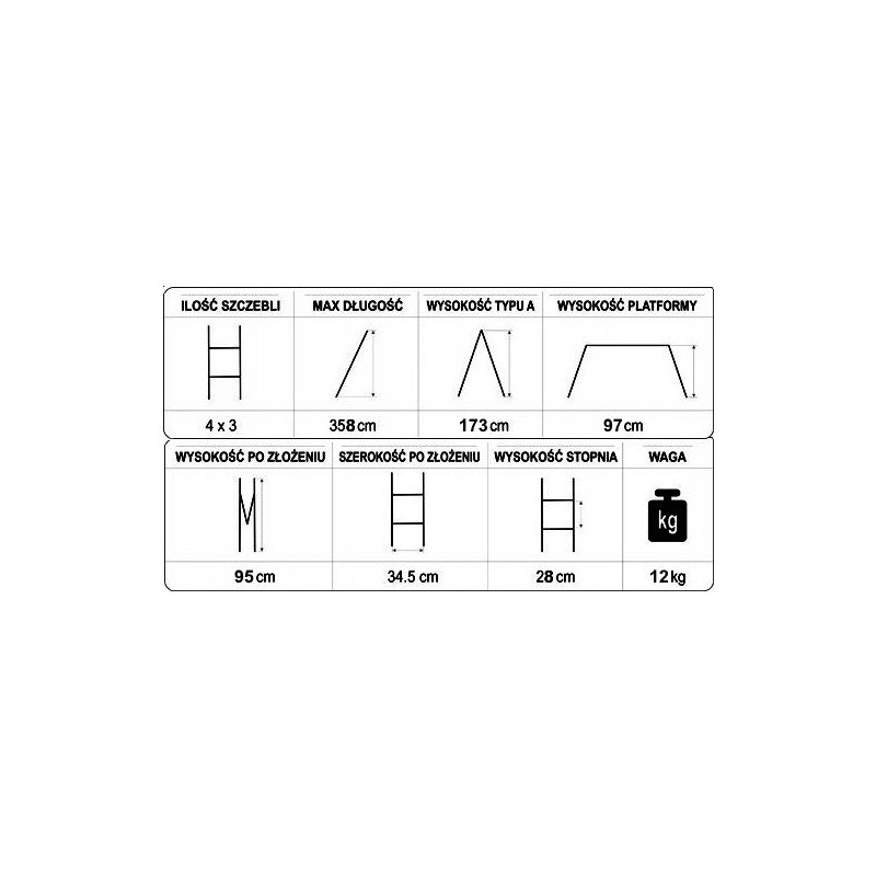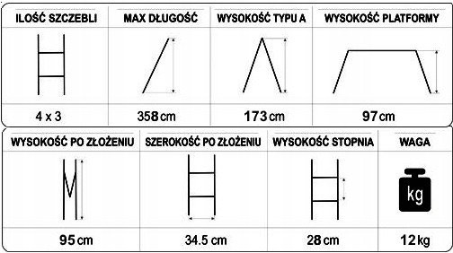 - Waga drabiny: 12 kg