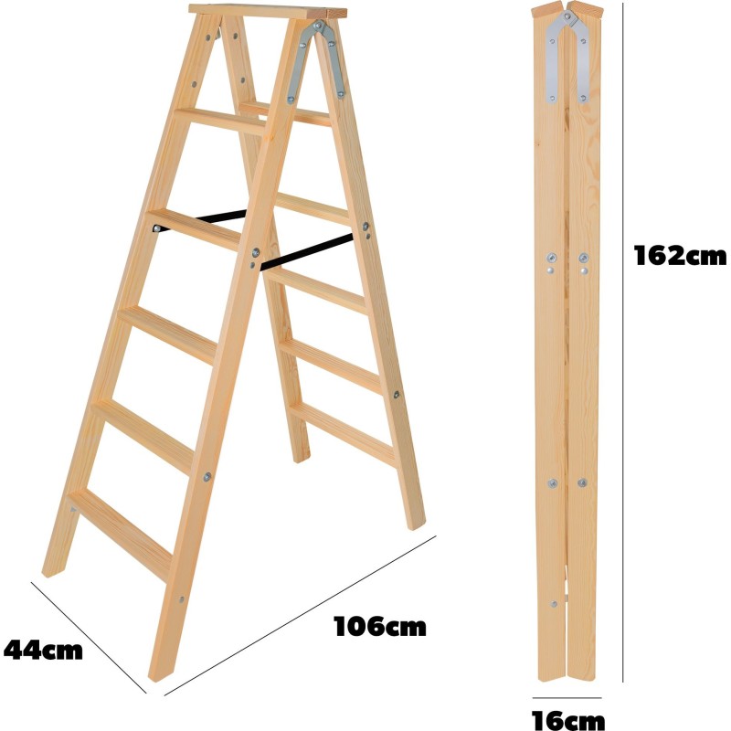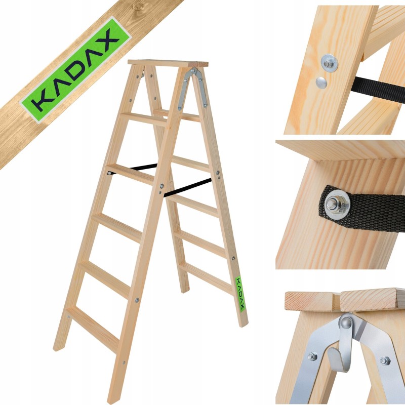 Kadax KADAX Drabina 6 Stopni Drewniana Rozstawna Malarska Dwustronna Domowa