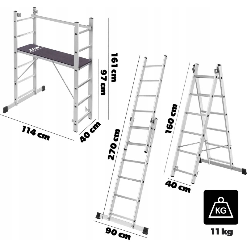 - Wysokość drabiny po rozłożeniu: 2,70 m