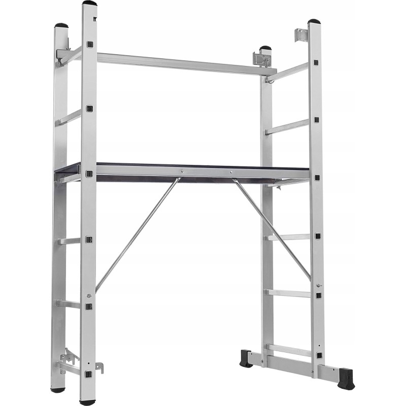 KADAX Aluminiowe rusztowanie drabinowe 2x6 "BASIC" to niezwykle wszechstronny i solidny sprzęt, który łączy w sobie zalety rusztowania oraz drabiny. Wykonane z wysokiej jakości aluminium, jest odporne na korozję, co sprawia, że doskonale sprawdza się w różnych warunkach, nawet przy intensywnym użytkowaniu. Dzięki przemyślanej konstrukcji, rusztowanie zapewnia maksymalne bezpieczeństwo oraz komfort pracy na wysokościach.