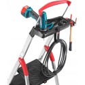 Aluminiowa, bezpieczna drabina stojąca z wielofunkcyjną półką, zabezpieczającym pałąkiem do podtrzymywania i blokadą platformy zapewnia bezpieczeństwo w formacie XXL: Wyjątkowo szerokie stopnie - 130 mm