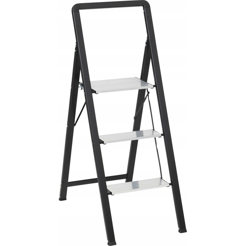 LEKKI SKŁADANY ALUMINIOWY KRZESŁ-DRABINA CZARNA 3-STOPNIOWA EASY 105 CM DO 150 KG