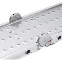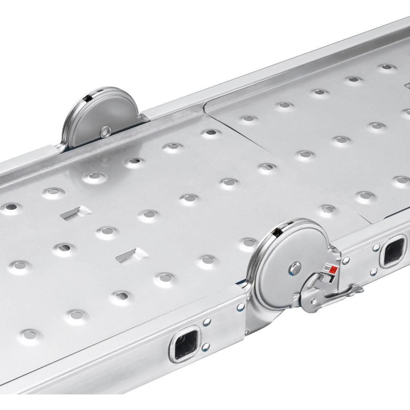 Drabina Hailo M60 została wyposażona w metalową platformę roboczą o wymiarach 143 x 30 cm, co zapewnia dodatkową przestrzeń i komfort podczas wykonywania zadań na wysokości. Wysokość platformy roboczej wynosi 91 cm, co ułatwia dostęp do trudno dostępnych miejsc.