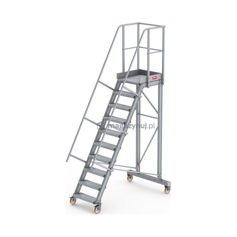 Lero Aluminiowy podest roboczy jezdny (wys. 245 cm, 10 stopni, 4 koła)