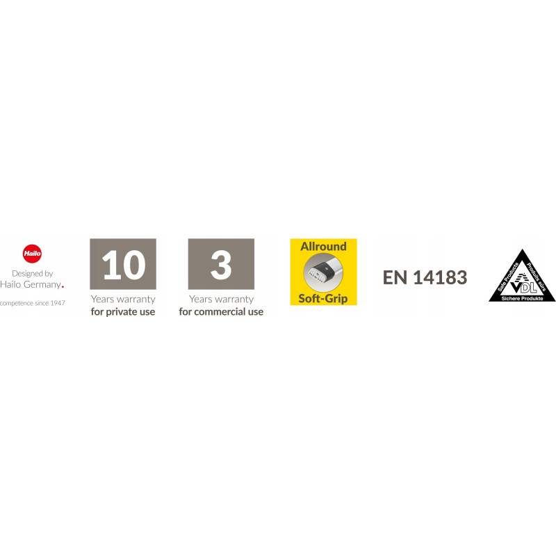Naszym znakiem firmowym jest czerwona kropka HAILO. Oznacza najwyższą jakość i wygodę użytkowania. Za tym kryje się postawa odpowiedzialnego przedsiębiorstwa rodzinnego, niezmiennie wysoka jakość produktów, łatwa obsługa i wysoka niezawodność oraz, co nie mniej ważne, nasz doskonały serwis, szybko reagujący, kompetentny i zorientowany na klienta. Wdrażamy te wartości we wszystkich produktach, obszarach działalności i procesach. To wymóg, jaki sobie stawiamy. Możesz być tego pewien. To właśnie gwarantujemy.
