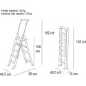 Dzięki 5 antypoślizgowym stopniom, zapewnia bezpieczeństwo podczas wykonywania wymagających zadań domowych. Szeroka platforma umożliwia bezpieczne stanie na drabinie nawet przez dłuższy czas, co czyni ją idealną do prac takich jak malowanie czy wieszanie firanek. TUSCANIA 5 posiada podpórkę wysuwaną poza platformę, co daje Ci dodatkowe zabezpieczenie podczas sięgania nawet do najwyższych miejsc. Ponadto, znajdziesz w niej także półkę na narzędzia, która usprawni prace domowe. Łatwy system rozkładania i składania oraz gumowe kółka, które działają tylko w pozycji zamkniętej, ułatwiają przechowywanie i przenoszenie drabiny z miejsca na miejsce.