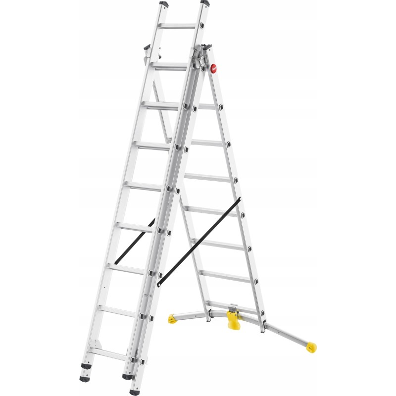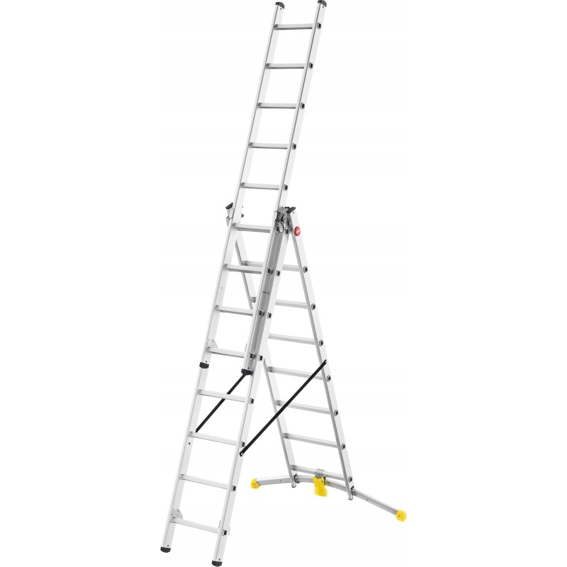 - Możliwości zastosowania: jako drabina przystawna, rozsuwana i rozstawna