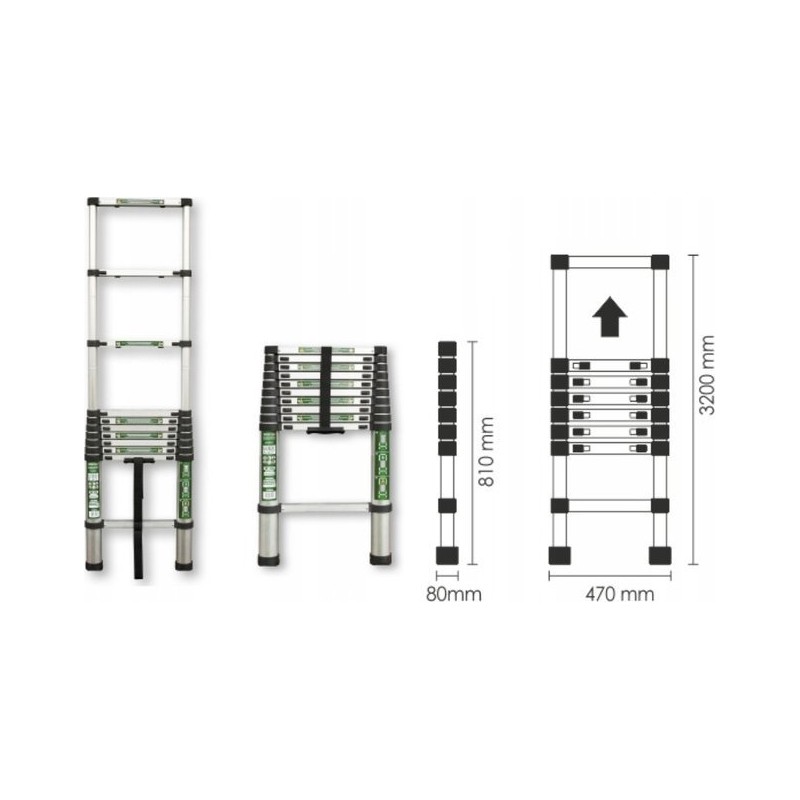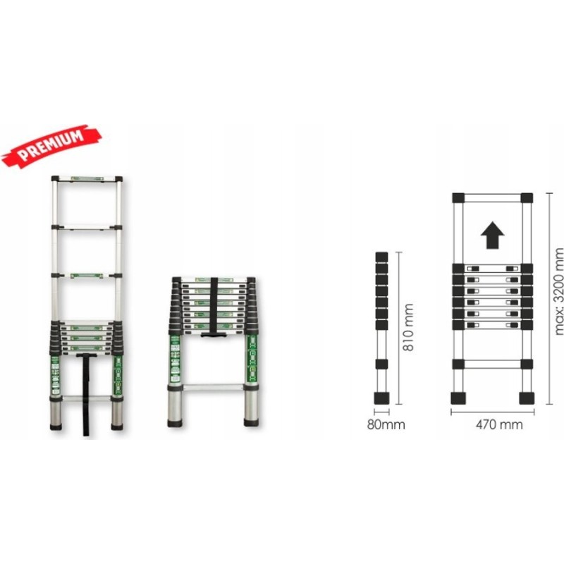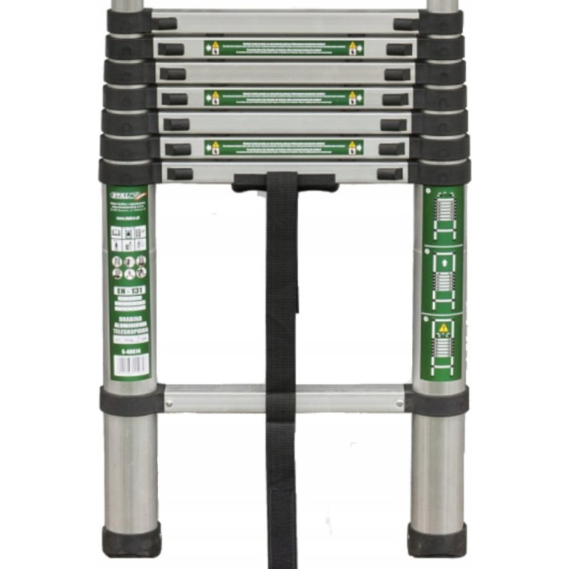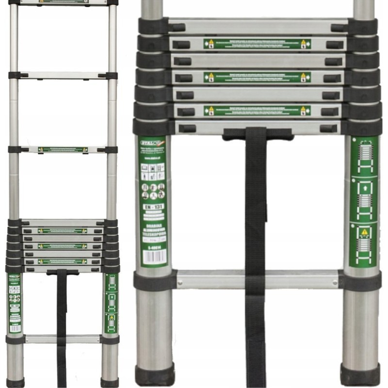 Drabina zapewnia bezpieczne pracowanie na wysokości, dysponując szerokimi stopniami, które umożliwiają komfortowe poruszanie się. Jest również wyposażona w gumowe nóżki zapobiegające chwianiu się konstrukcji. Po złożeniu drabina ma kompaktowe rozmiary i jest łatwa do przenoszenia. Nie zajmuje dużo miejsca, więc można ją przechowywać w niewielkim mieszkaniu, małym warsztacie czy też w małej piwnicy.