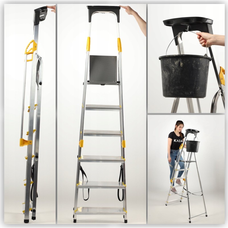 Funkcjonalna drabina aluminiowa z półką i hakiem