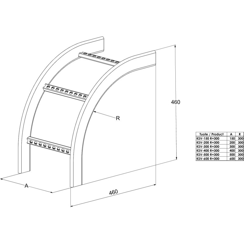 Łuk kablowy KSV-400 R=300 HDG jest dedykowany do drabinek kablowych typu KS20, KS60 oraz KS80. Dzięki promieniowi zgięcia wynoszącemu R=300 mm, pozwala na dostosowanie instalacji do specyficznych wymagań, co czyni go nieodzownym elementem w każdej nowoczesnej instalacji elektrycznej.