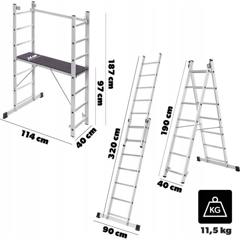 - Wysokość drabiny po rozłożeniu: 3,20 m