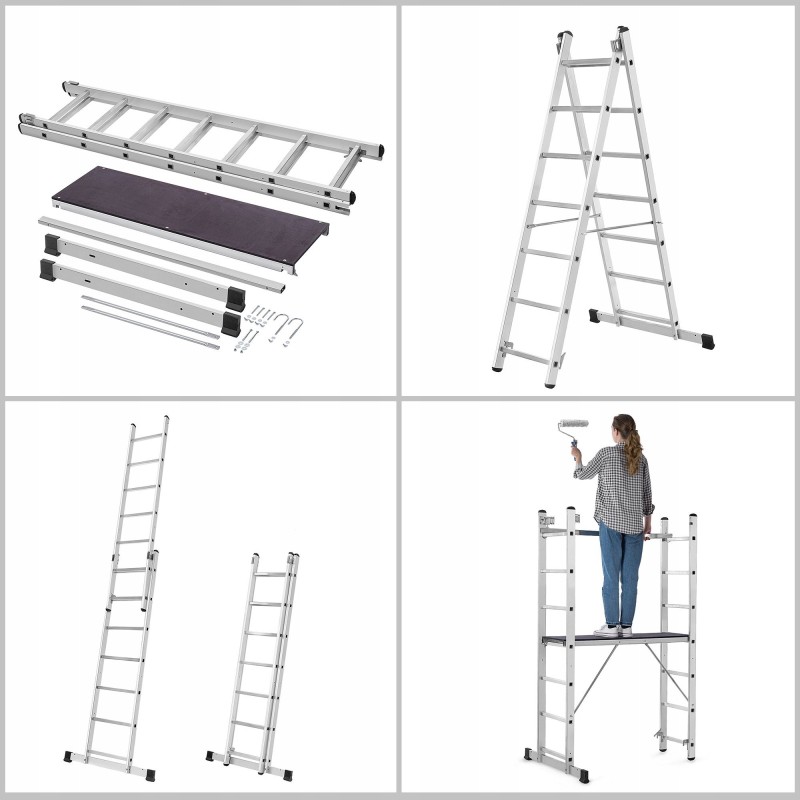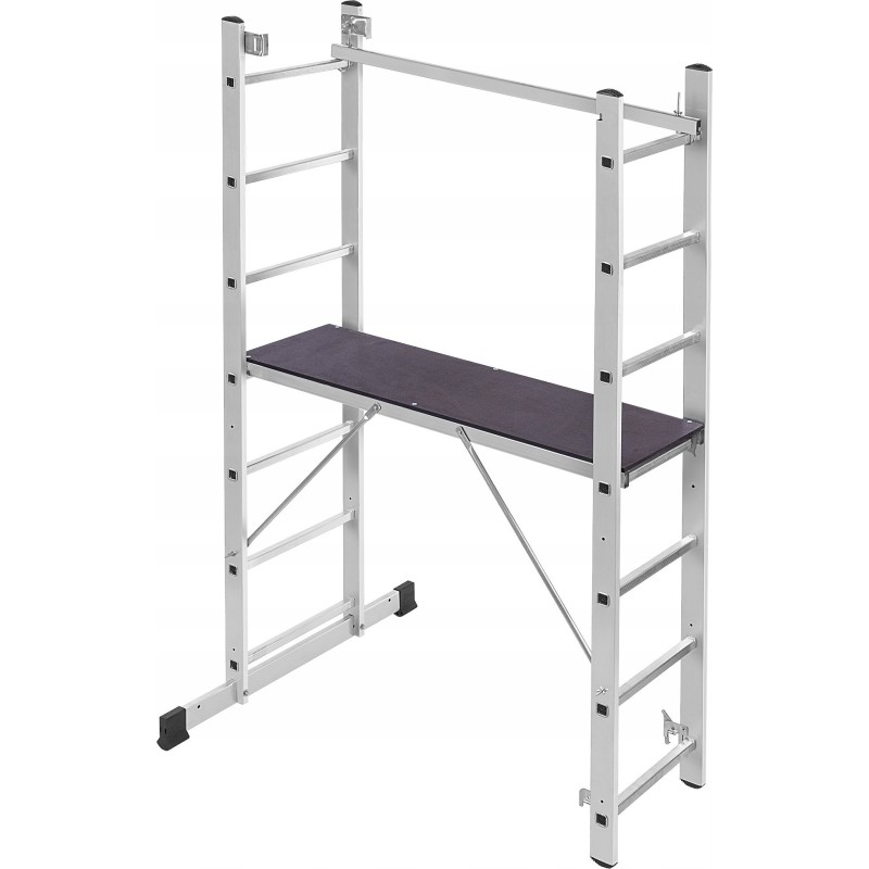 Rusztowanie aluminiowe KADAX ARD2x7 BASI to doskonały wybór dla tych, którzy potrzebują wszechstronnego sprzętu do pracy na wysokościach. Jego przemyślana konstrukcja pozwala na użycie zarówno jako drabiny przystawnej, jak i wolnostojącej, co czyni je niezwykle praktycznym narzędziem w każdym domu i ogrodzie.