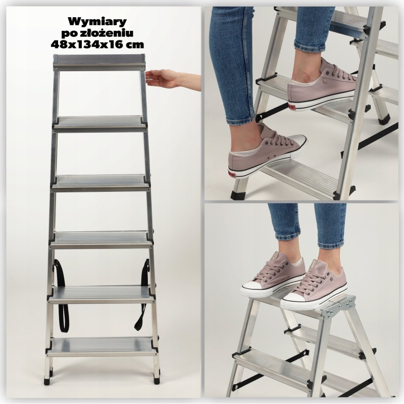 - Wymiary drabiny po złożeniu: 48 x 16 x 134 cm