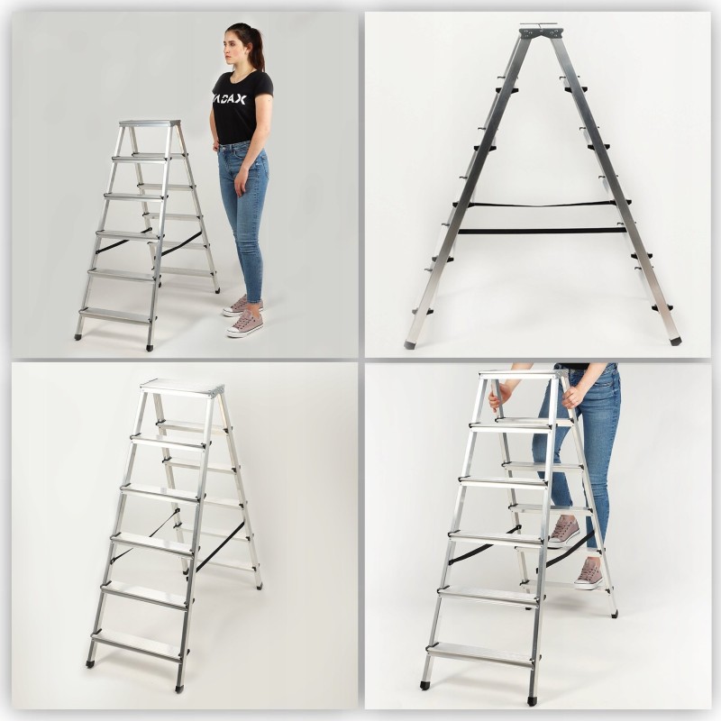 Ten rodzaj drabiny można postawić bez żadnych dodatkowych podpór takich jak np. ściana, dzięki temu drabinę można rozłożyć w dowolnym miejscu w domu lub ogrodzie. Malowanie sufitu lub wymiana żarówki już nie będzie problemem.