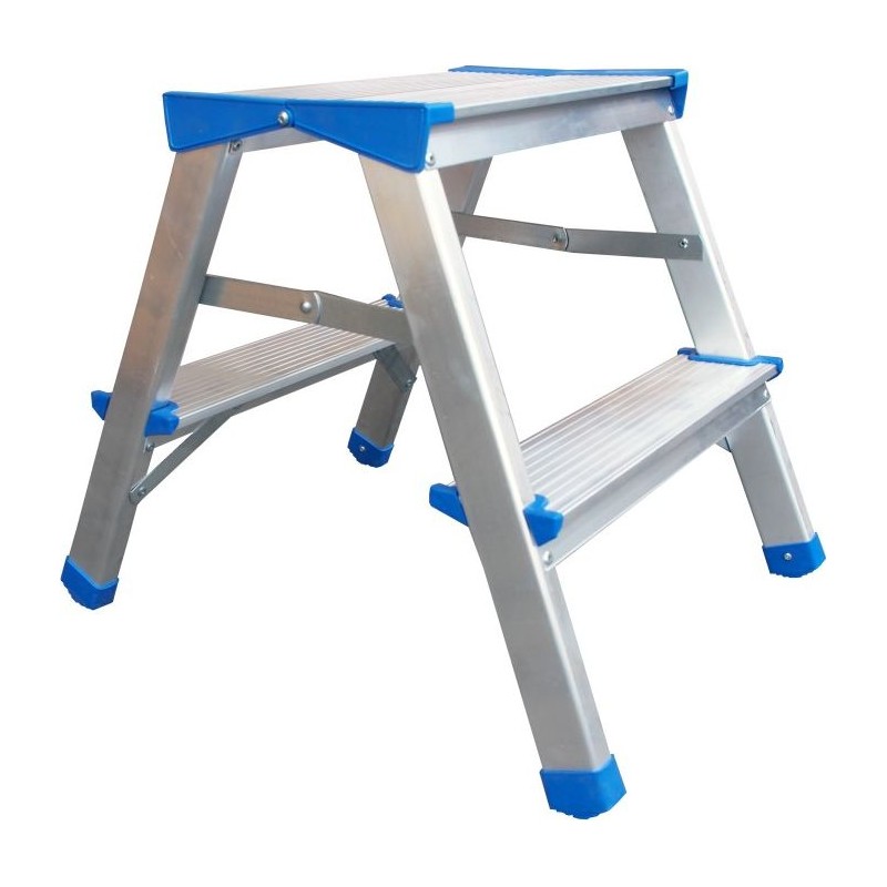 Solidny stołek aluminiowy z obustronnym wejściem. Idealny do prac domowych i remontowych. Dostępny w wariantach 1-, 2-stopniowym. Dodatkowe wzmocnienie stopni nitami wewnętrznymi. Antypoślizgowe, profilowane stopnie o głębokości 80 mm Stopki wykonane z tworzywa antypoślizgowego. Mocny stołek rozkładany producenta DRABEX sprawdzi się w drobnych pracach wewnątrz budynku. Szeroki rozstaw zapewnia bezpieczeństwo podczas wykonywanych prac. Dodatkowe wzmocnienia stopni nitami wewnętrznymi co przyczynia się do dużej wytrzymałości udźwigu max.150kg.