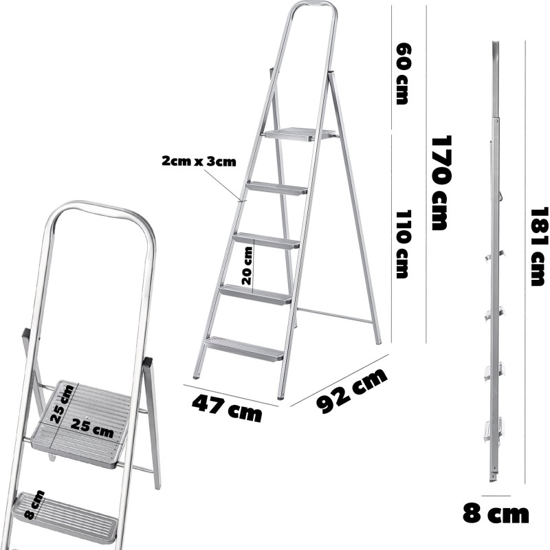 - Wymiary drabiny po rozłożeniu: 170 x 92 x 47 cm