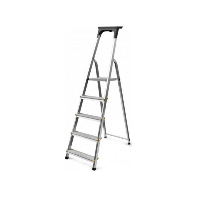 Drabina domowa wykonana z wytrzymałego i lekkiego aluminium jest dedykowana do codziennej pracy w gospodarstwach domowych oraz okazjonalnych remontach. Solidna 7 stopniowa konstrukcja drabiny z jednostronnym wejściem Bezpieczny 60 centymetrowy pałąk Szeroki podest roboczy 25 cm x 26 cm Mocne podłużnice Karbowane stopnie przynitowane i zabezpieczone osłonkami z tworzywa sztucznego Specjalne antypoślizgowe stopki zapewniają najwyższy standard bezpieczeństwa Możliwość uzupełnienia o półkę na narzędzia Polski sprawdzony producent