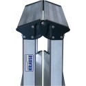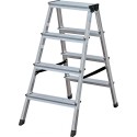 Lekka, aluminiowa drabina z wejściem z dwóch stron. Dostępna jest w wersjach od 3 do 8-stopniowych. Doskonale sprawdzi się w domu, małym warsztacie, a także podczas lekkich prac konserwatorskich. Wygodne, szerokie stopnie z obu stron drabiny. Mocne wytrzymałe połączenia podłużnic za pomocą stalowych przegubów. Stabilne, sześciokrotnie nitowane połączenia stopni z podłużnicami. Antypoślizgowe, profilowane i nie uszkadzające podłogi stopki. Gwarancja producenta 5 lat na całą drabinę. Drabiny wykonane wg. normy EN-131, wytrzymałość do 150 kg.
