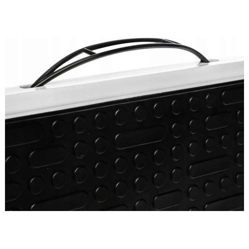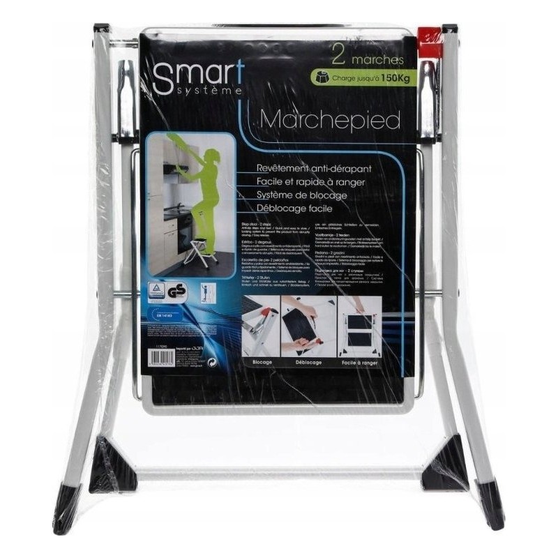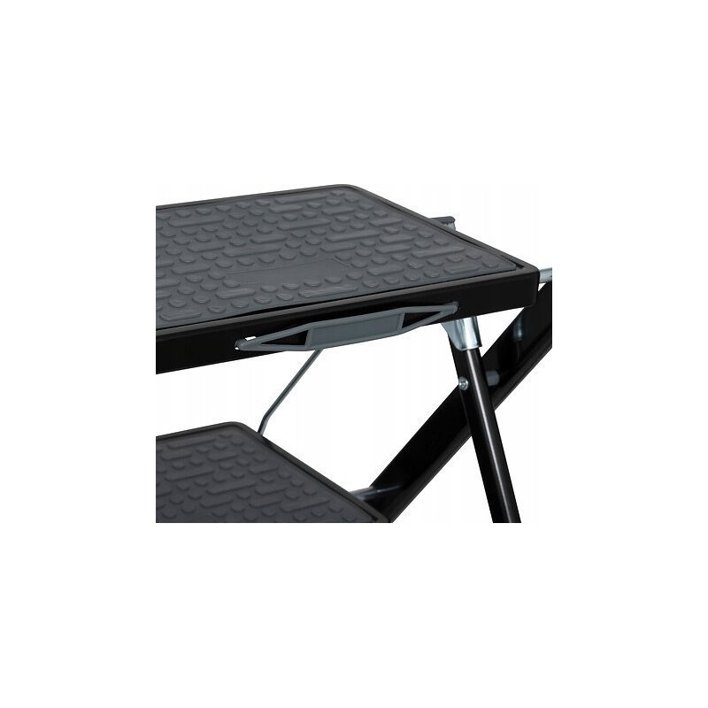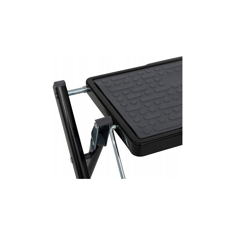 Maksymalne obciążenie 150 kg. Bezpieczny mechanizm blokady. Łatwe i szybkie składanie. Antypoślizgowe pokrycie stopki. Certyfikaty TUV i EN14183. Kolor: Czarny