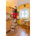 Solidna konstrukcja zapewnia stabilność i wytrzymałość, co jest kluczowe podczas wykonywania różnorodnych prac. Schody zostały zaprojektowane tak, aby sprostać codziennym wyzwaniom, oferując użytkownikom pewność i komfort podczas pracy.