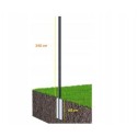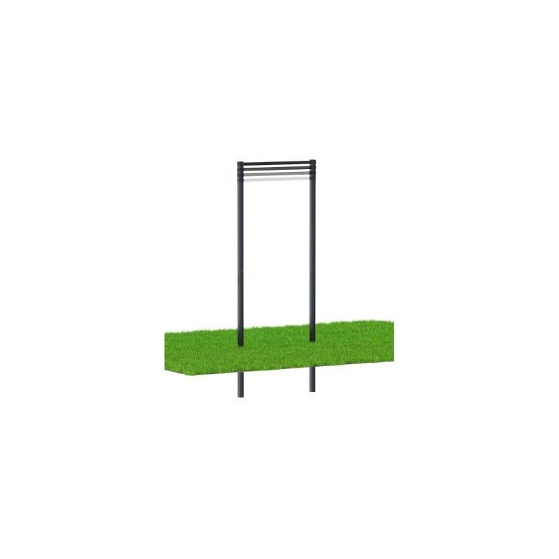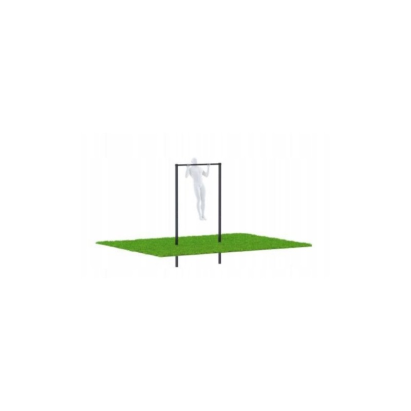 Drążek ma długość 150 cm, a jego słupy pionowe mają długość 300 cm. Zaleca się wkopanie zestawu na głębokość 60 cm w grunt, co dodatkowo zwiększa stabilność konstrukcji. Średnica drążka wynosi 34 mm, co zapewnia wygodny chwyt podczas ćwiczeń.