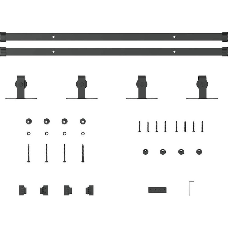 - Cicha i płynna praca: dzięki wewnętrznym łożyskom drzwi mogą przesuwać się płynnie i cicho. W zestawie znajdują się również ograniczniki drzwi, które zapobiegają wykolejeniu rolek, a gumowe uszczelki buforują uderzenia rolek i redukują hałas.