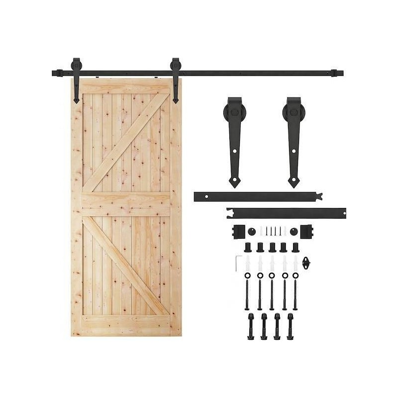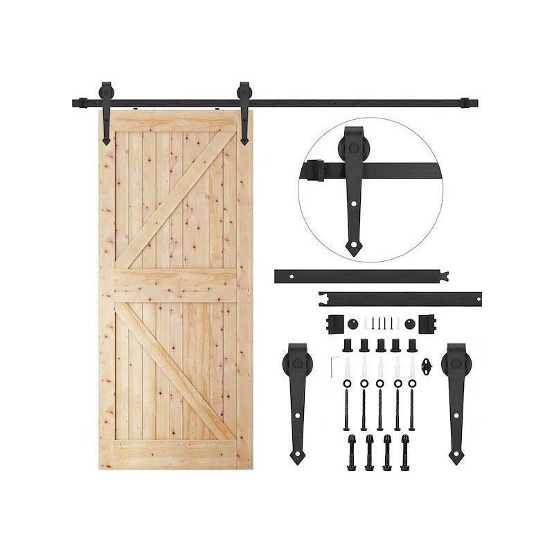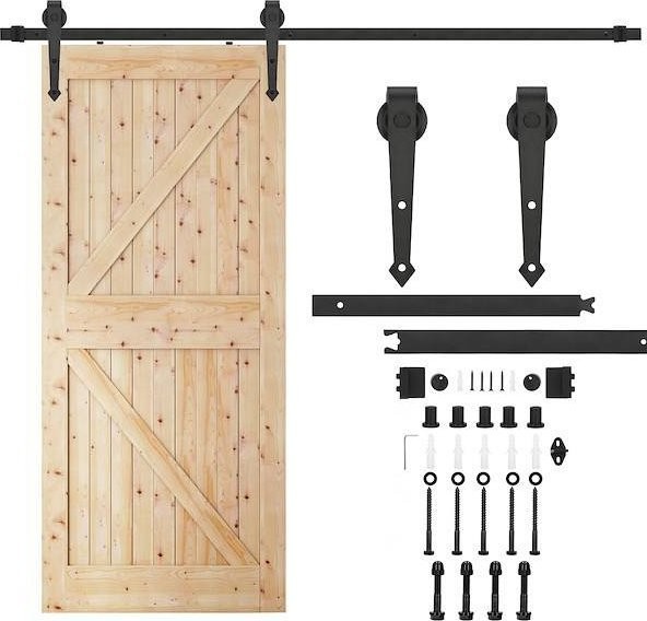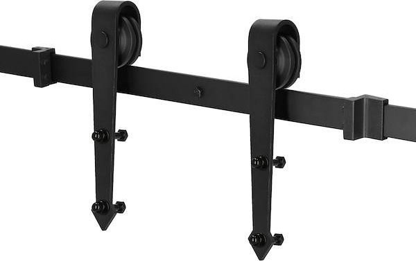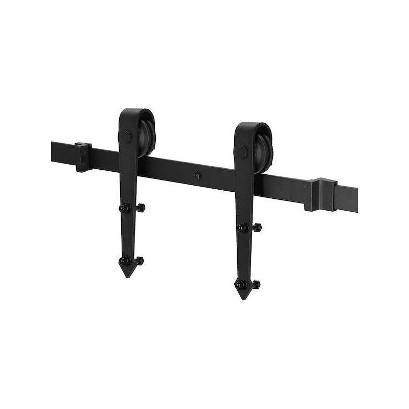 Springos System do drzwi przesuwnych 200 cm prowadnica do 100 kg, barn door z ozdobnymi okuciami stal czarny UNIWERSALNY