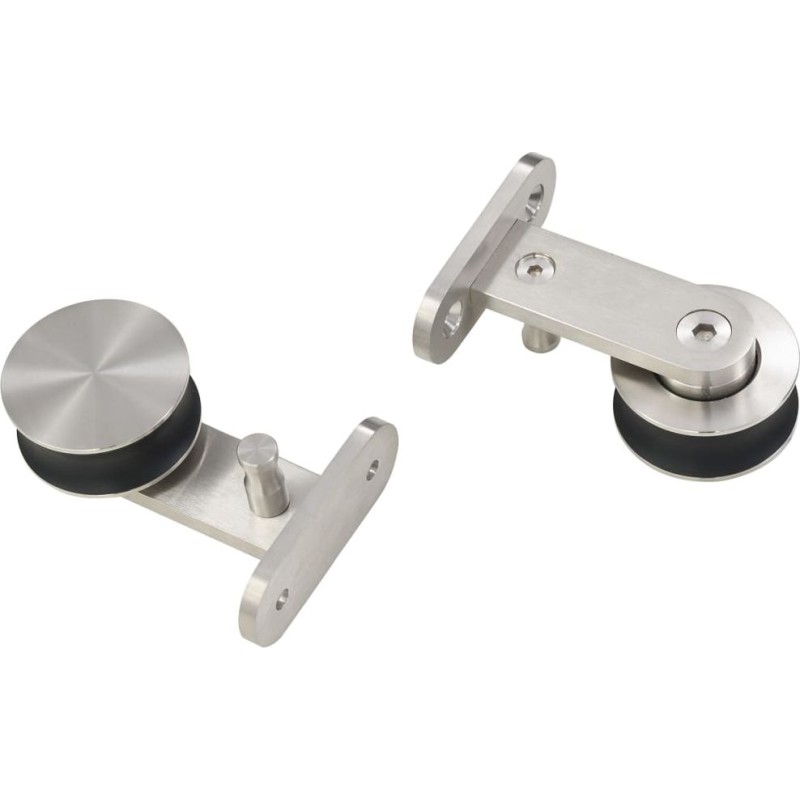 Zestaw do mocowania drzwi składa się z 2 wysokiej jakości prowadnic i wytrzymałych rolek. Prowadnice wykonano z trwałej i solidnej stali nierdzewnej. Za sprawą wewnętrznych łożysk drzwi będą przesuwały się gładko i cicho. Ograniczniki zapobiegną wypadaniu rolek z prowadnic, a gumowe uszczelki osłabią uderzenie rolek i zredukują hałas. System jezdny do drzwi przesuwnych wyposażony jest również w wysokiej jakości prowadnicę podłogową, która stabilizuje ruch drzwi.