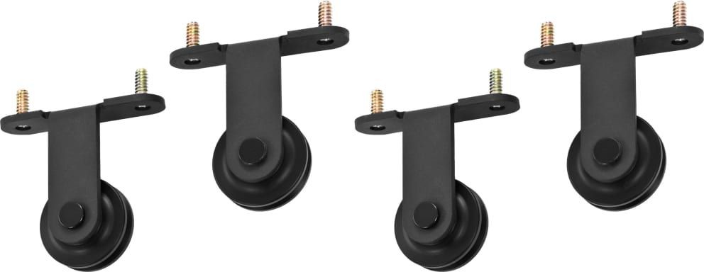 Każdy zestaw do zawieszania drzwi przesuwnych zawiera 2 wysokiej jakości prowadnice (o całkowitej długości 200 cm) i 2 wytrzymałe rolki. Prowadnice wykonano z malowanej proszkowo stali, która jest mocna, wytrzymała i trwała. Za sprawą wewnętrznych łożysk drzwi będą przesuwały się gładko i cicho. Ograniczniki zapobiegną wypadaniu rolek z prowadnic, a gumowe uszczelki osłabią uderzenie rolek i zredukują hałas. System jezdny do drzwi suwanych wyposażony jest również w wysokiej jakości prowadnicę podłogową, która ustabilizuje ruch drzwi.