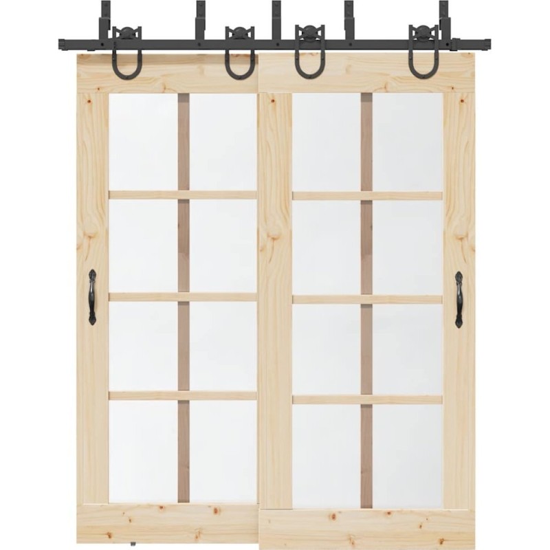 - Idealny do podwójnych drzwi do stodoły: gdy przestrzeń na ścianie jest ograniczona, zestaw uchwytów omijających drzwi do stodoły umożliwia niezależne przesuwanie dwóch drzwi na dwóch szynach bez konieczności zapewnienia dodatkowego miejsca.