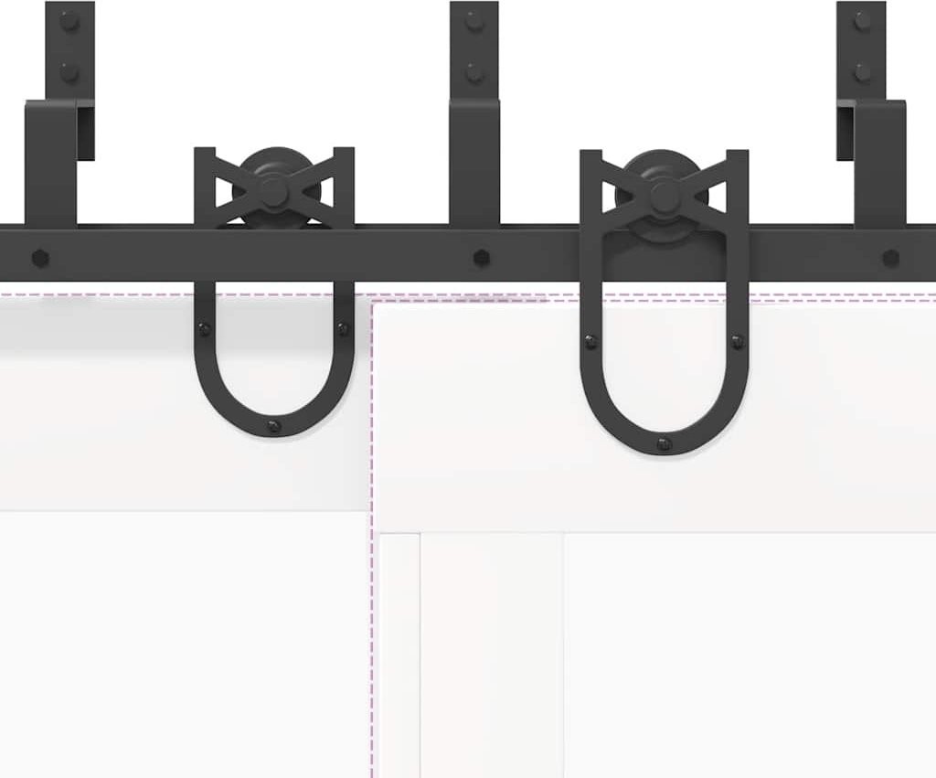 Dzięki temu zestawowi okuć do drzwi przesuwnych możesz łatwo zamontować podwójne szyny, aby drzwi przesuwały się jedne przed drugimi, a drugie za sobą.
