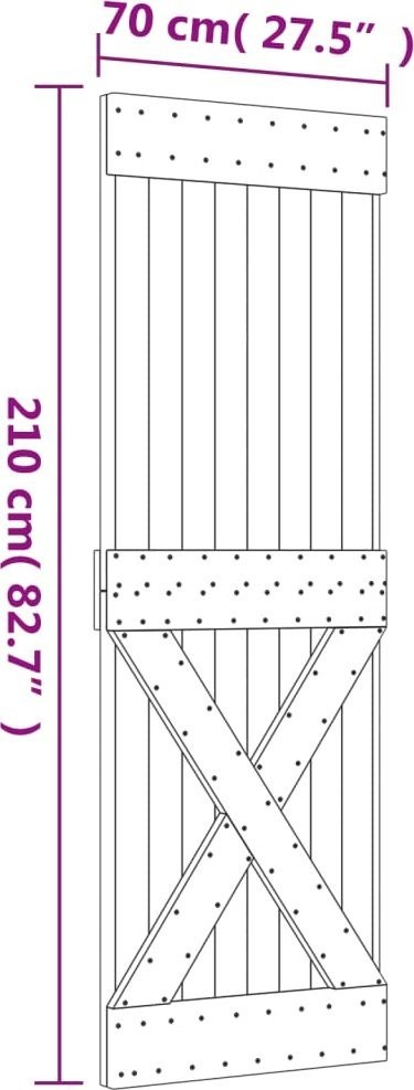 vidaXL Drzwi przesuwne z osprzętem, 70x210 cm, lite drewno sosnowe