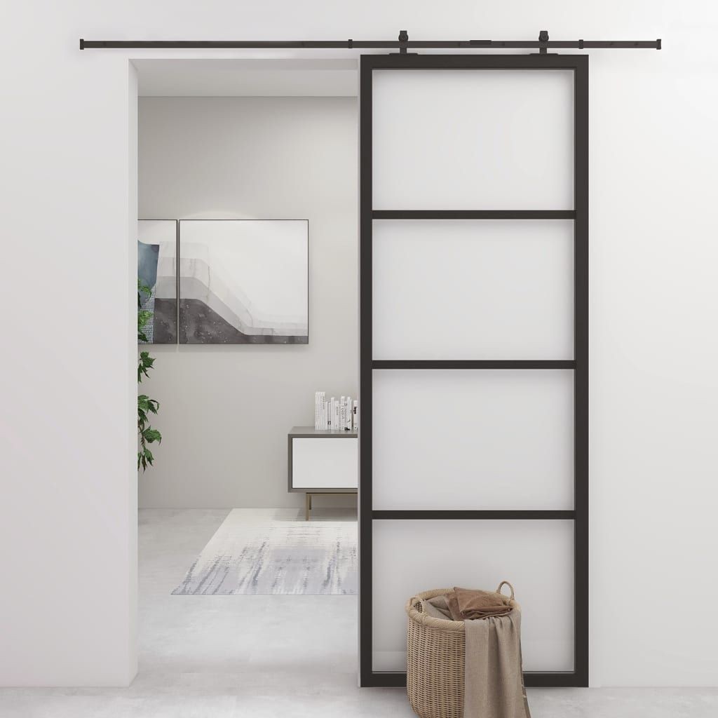 vidaXL Drzwi przesuwne, aluminium i szkło ESG, 76x205 cm, czarne