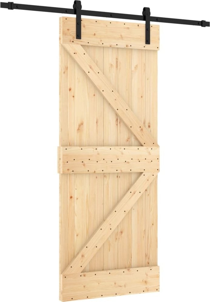 vidaXL Drzwi przesuwne z osprzętem, 85x210 cm, lite drewno sosnowe
