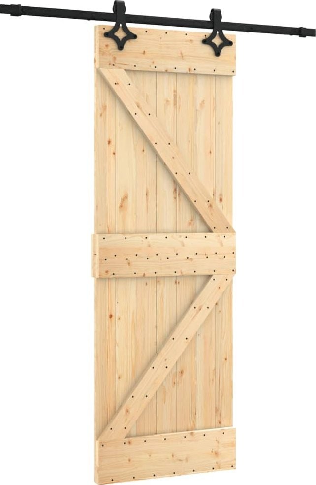 vidaXL Drzwi przesuwne z osprzętem, 70x210 cm, lite drewno sosnowe